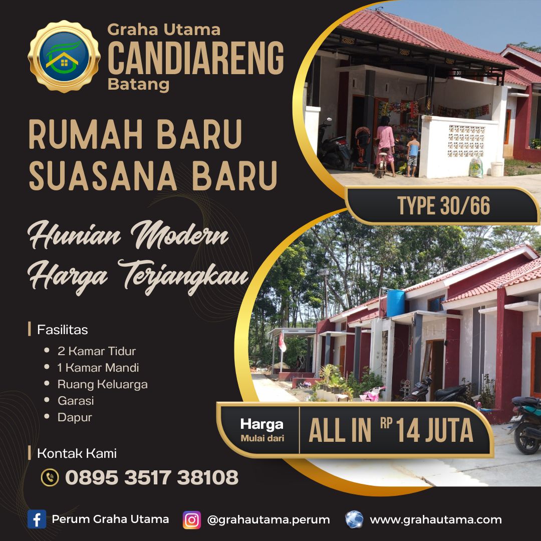 Perumahan Graha Utama Candiareng terletak di desa Candiareng kecamatan warungasem kabupaten batang dengan mengusung konsep nyaman dan asri. Perumahan Graha Utama Candiareng dibangun diatas lahan -+ ………. HA.